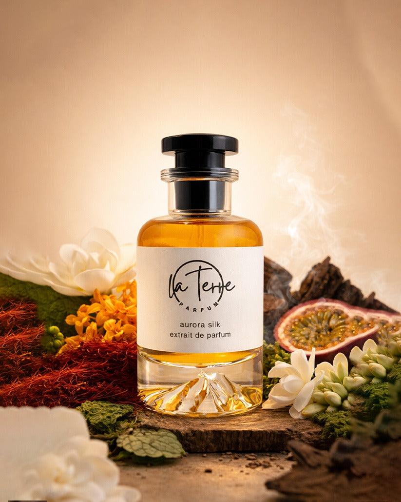 Aurora Silk is a luxurious and exotic feminine fragrance intertwined with floral richness, juicy fruits, and warm woody–amber undertones.
